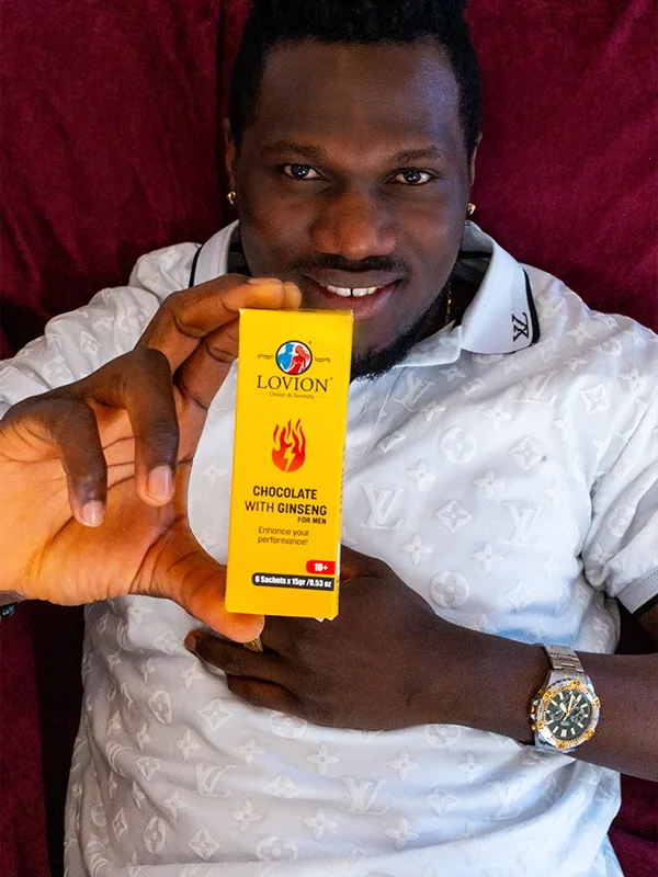 Crafted with nature’s most potent elements — including Liquid Chocolate, Ginseng, Tribulus Terrestris, Epimedium, Maca, Gotu Kola, Saw Palmetto, and Ginkgo Biloba – Lovion enhances your body’s natural vitality.