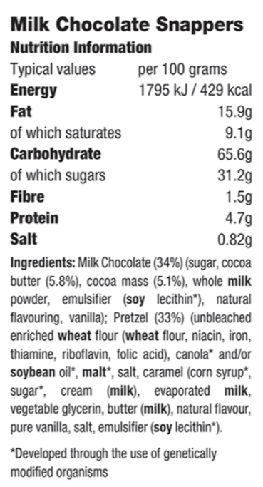 Snappers Milk Chocolate and Caramel Pretzels, 567g